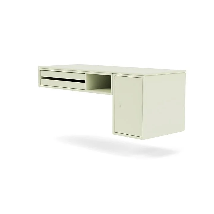 BUREAU is a small workdesk that elegantly integrates into the home office, living room and bedroom interior. BUREAU have two large trays that can be removed entirely from the module which provides great overview of the contents. Besides the trays BUREAU has a shelf and a cupboard beneath the worktop. BUREAU only comes as a wall-mounted module.